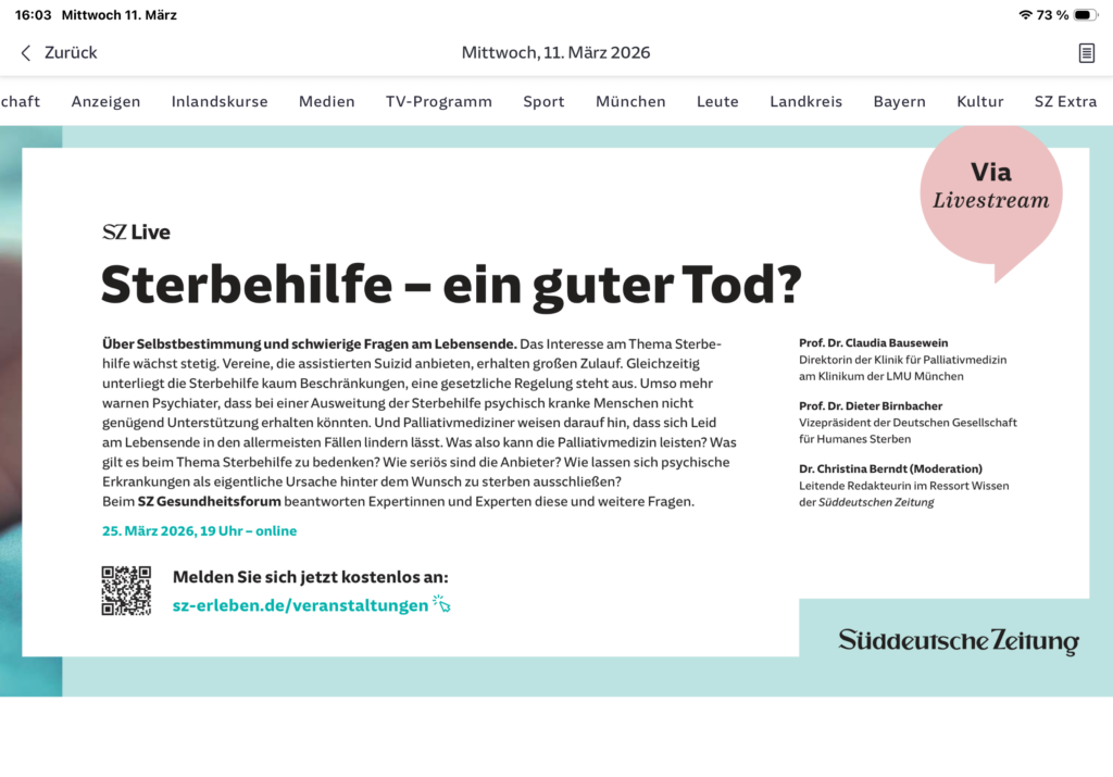 im Anhang findet ihr einen Hinweis auf eine Online-Veranstaltung der SZ zum Thema „Sterbehilfe – ein guter Tod?“